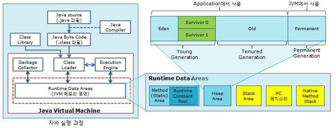 Young Generation은 힙 메모리의 일부로 생성된 객체가 처음으로 할당되는 영역입니다. Young Generation은 Eden, Survivor, Tenured로 구분됩니다.- Eden